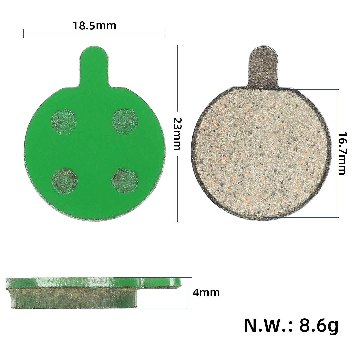 - 18mm width and 23mm total height including pin, 4mm thickness
